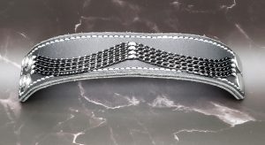 Tough and dainty all at the same time!  This hand sewn cuff has a soft gray leather inside and a sturdy black leather outside.