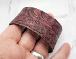 Note – Each product is HANDMADE!  Hand cut, handsewn, hand dyed/painted. Leather color, shape, and texture will vary slightly from image(s) shown.