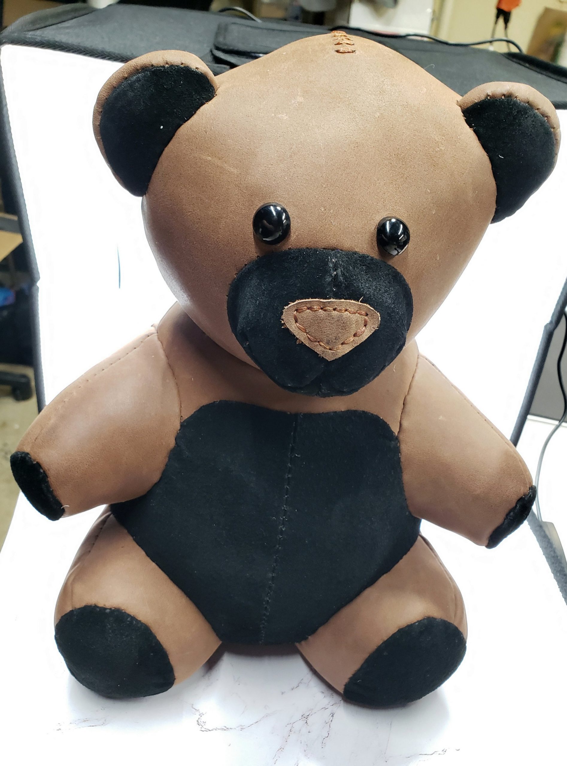Customize your leather Teddy Bear.  Choose black or brown bear (Leather Color) and a number of colors for tummy, paws, and ears (Secondary Leather Color).